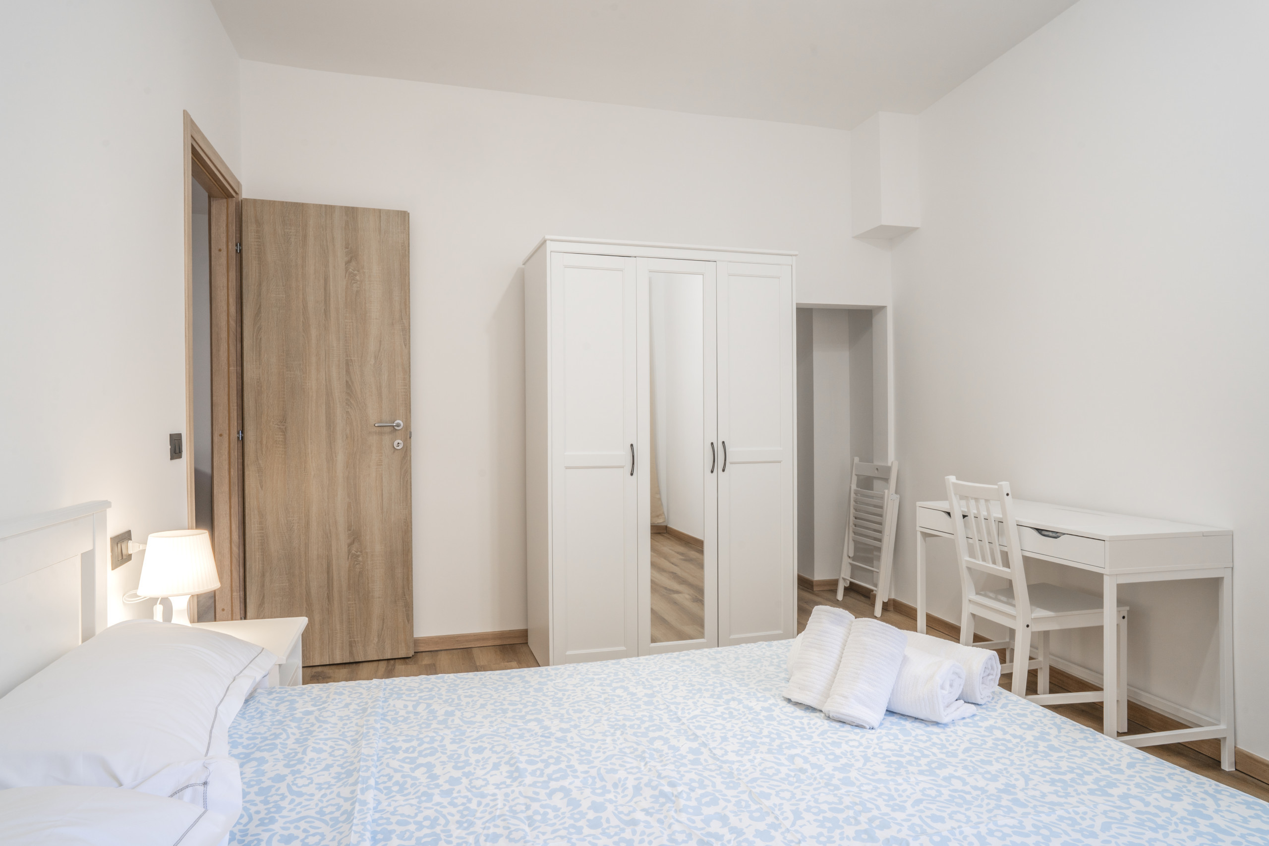 Immaginate il vostro soggiorno genovese in questa spaziosa e luminosa camera matrimoniale con bagno esterno ad uso esclusivo.