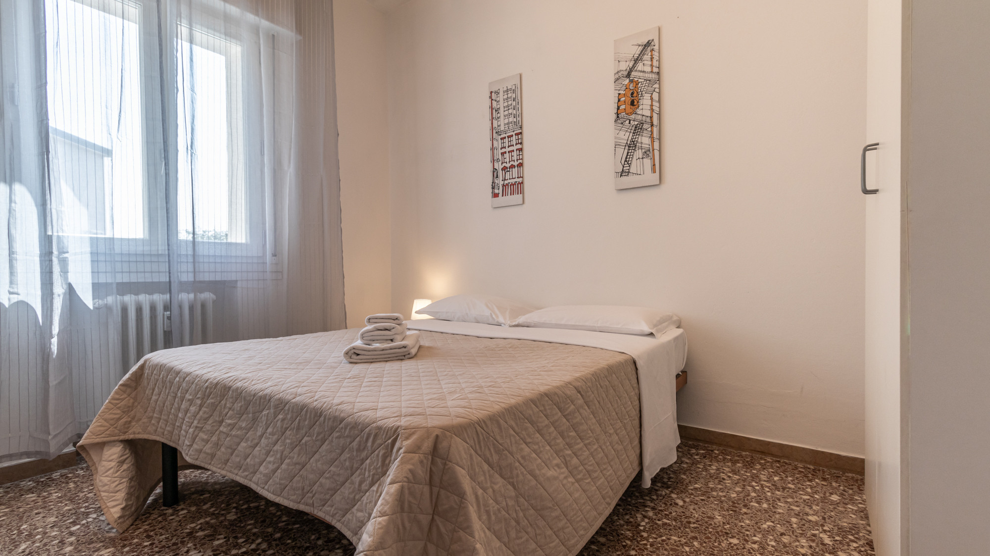 Confortevole camera matrimoniale ad uso singola, con tv e wi-fi, in appartamento posto al 5° piano con ascensore adiacente alla stazione centrale dei treni di Modena.