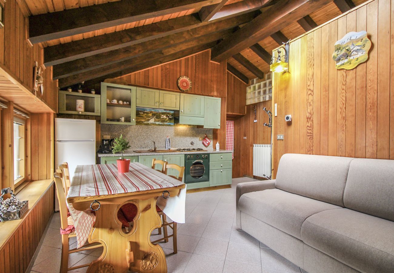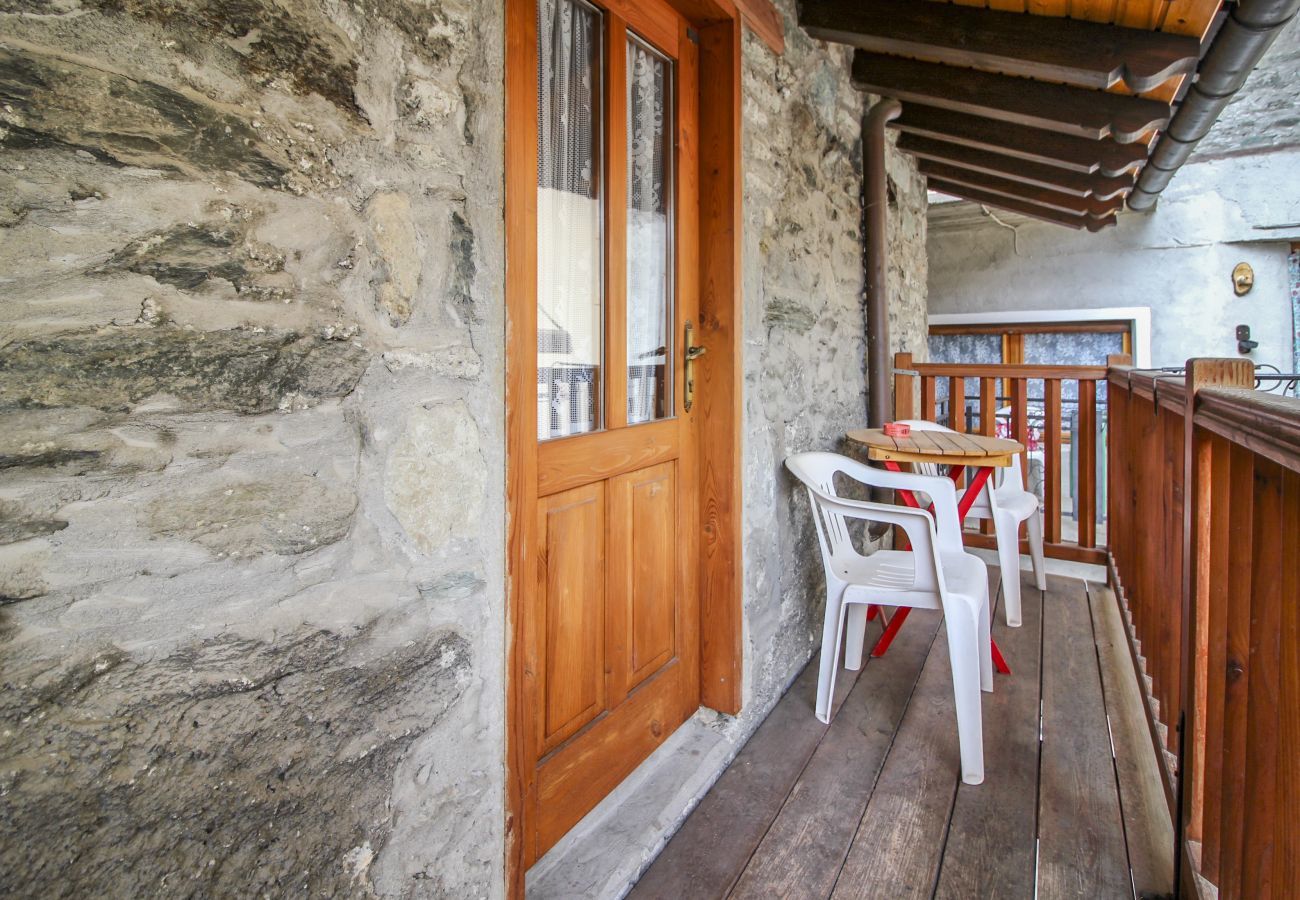 Bilocale Tipico di montagna adatto alle coppie in centro paese a Brusson con alto soffitto mansardato.
