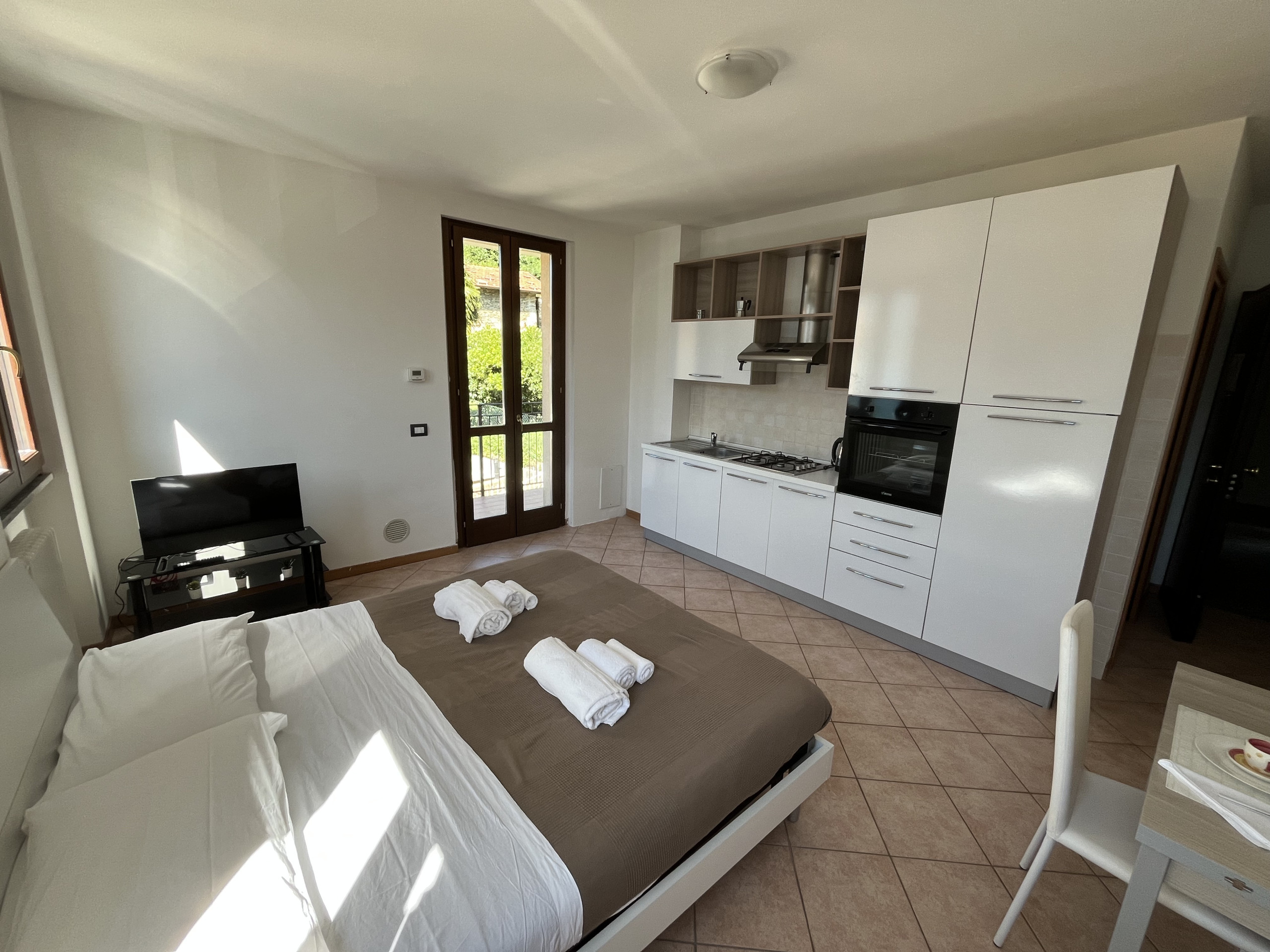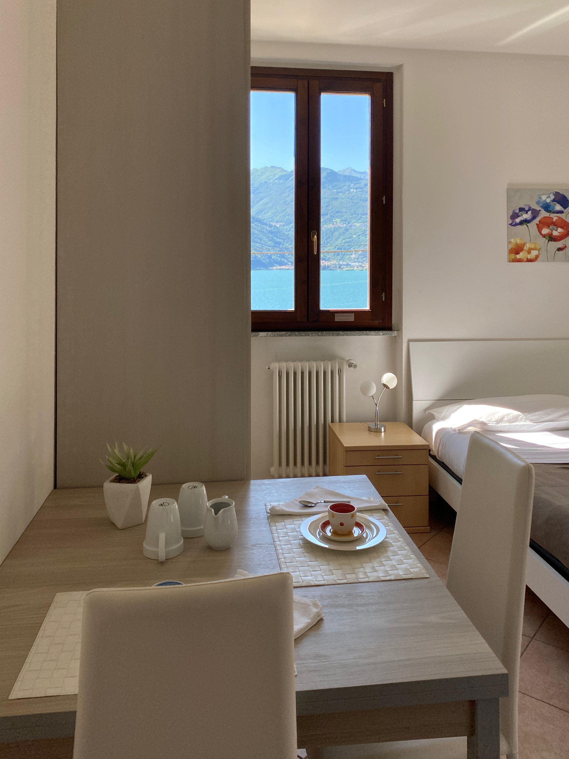 Immerso in un contesto naturale unico, il monolocale Agone è la scelta perfetta per chi cerca relax, comfort e panorami da cartolina. Dal balconcino potrete godere di una vista spettacolare sul lago, incorniciata dalle maestose montagne circostanti.