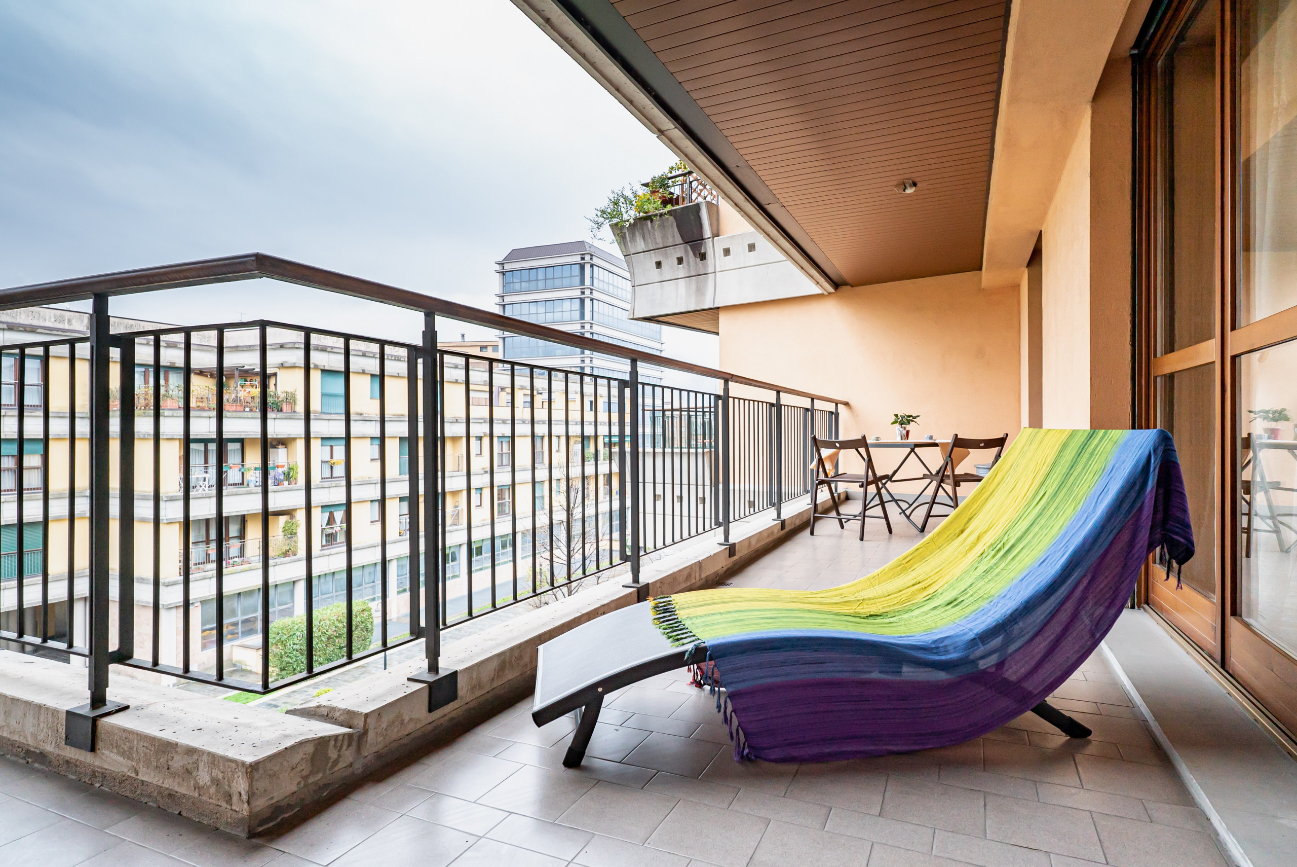 Una delle caratteristiche più affascinanti di questa proprietà è il terrazzino privato che si affaccia su una tranquilla corte interna. Qui, è possibile rilassarsi e godersi l'aria fresca, magari con una tazza di caffè al mattino o un bicchiere di vino al tramonto con vista sul parco del Broletto.