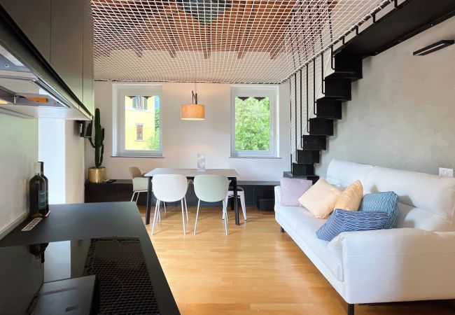 Completano la proprietà due balconi, ideali per godere dell’aria fresca che arriva dal vicino lago, offrendo momenti di relax all’aperto. L’ambiente è arricchito da dettagli decorativi di gusto, come un grande cactus d’arredo, fiori freschi sul tavolo e cuscini colorati, che donano personalità e calore all’intero spazio.