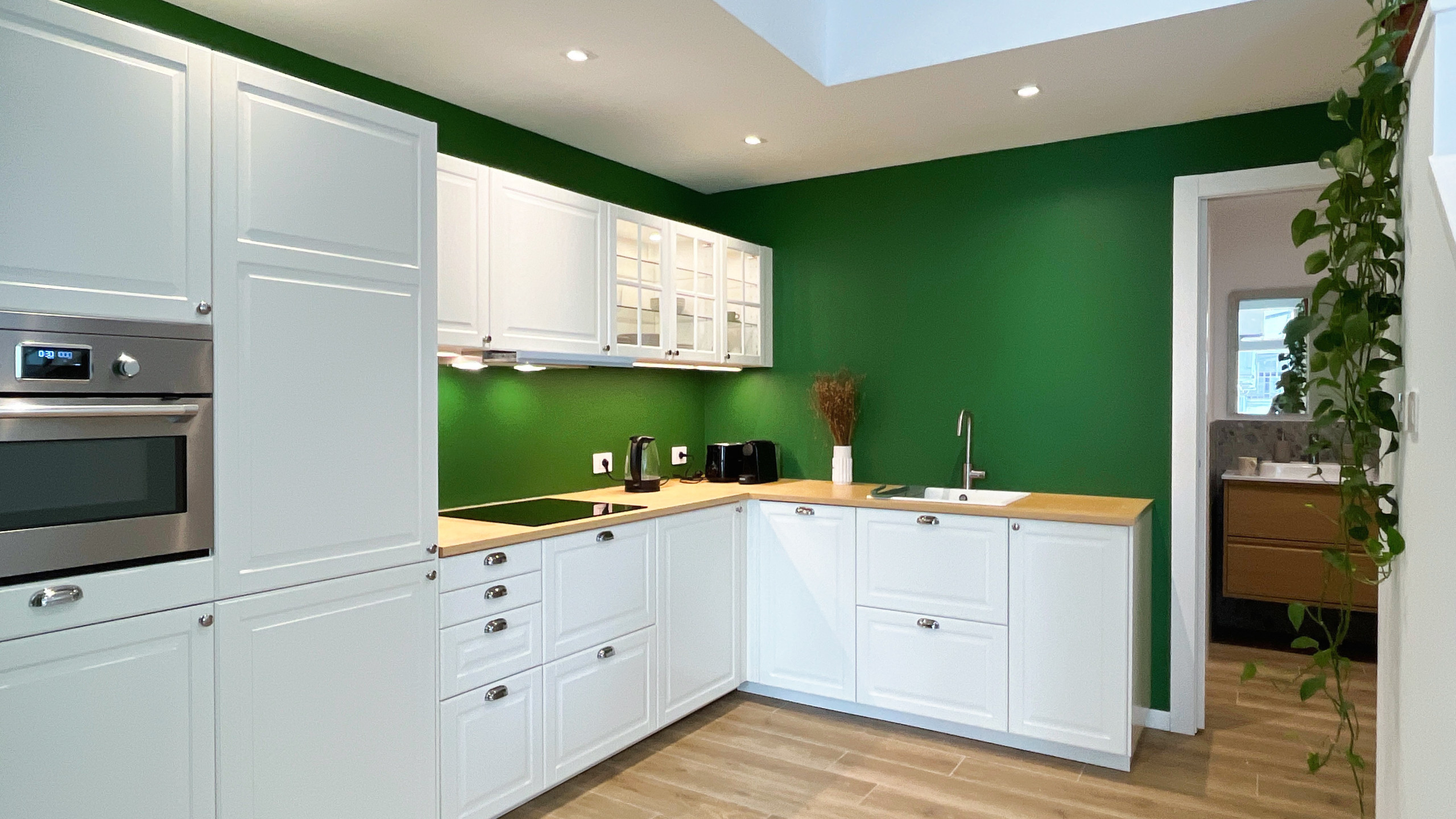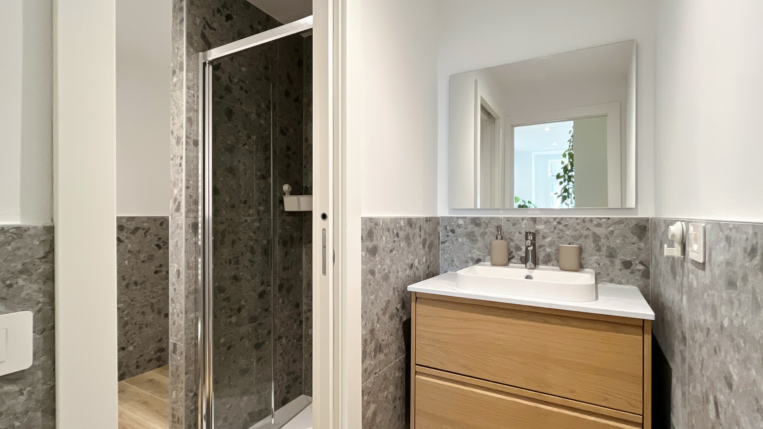 La cucina è ben attrezzata e perfetta per soggiorni brevi o prolungati. Il bagno moderno, recentemente rinnovato, è dotato di una doccia spaziosa e rifiniture eleganti.