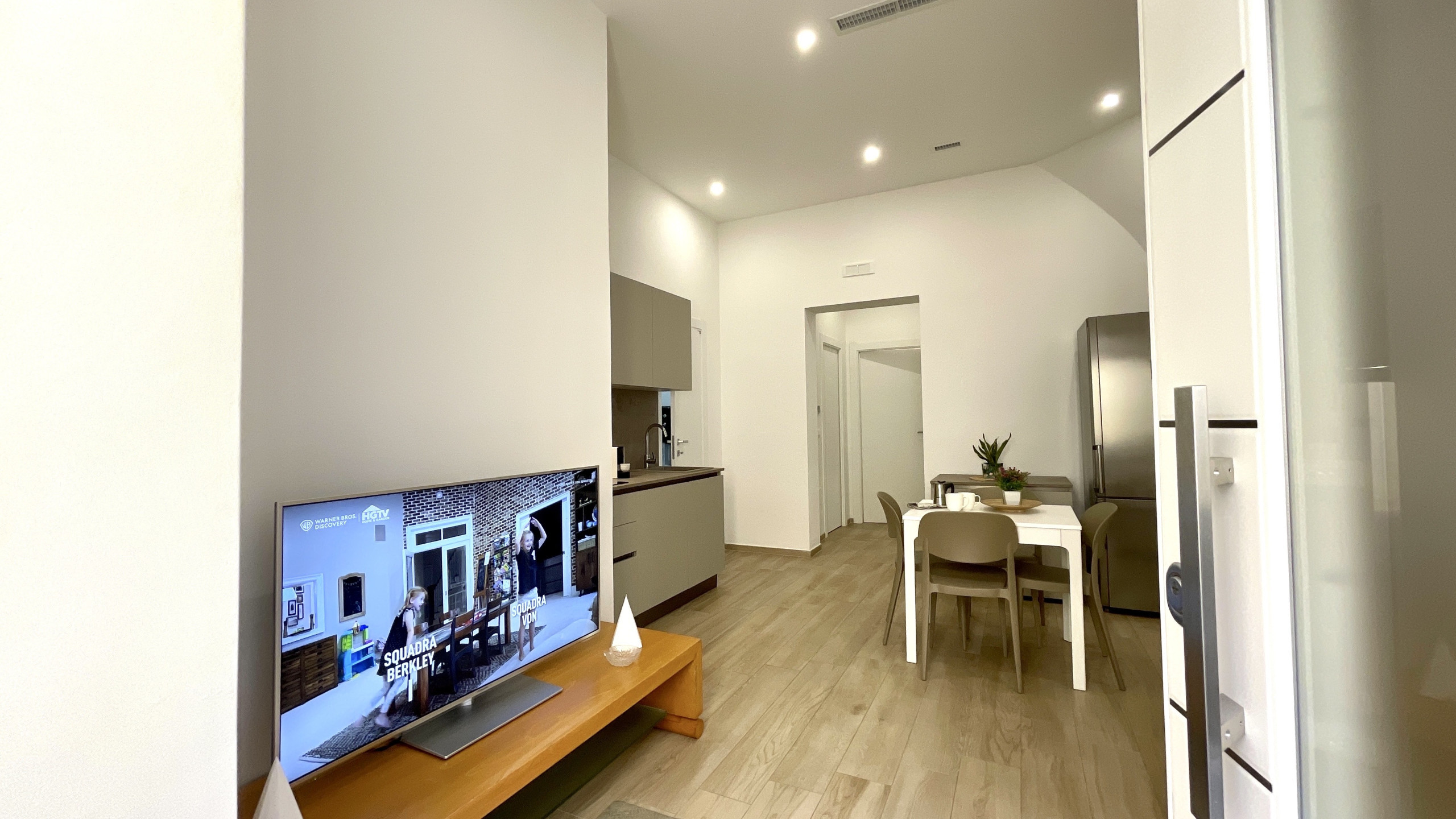 Cucina attrezzata: La cucina a vista, completamente attrezzata con tutto ciò che ti serve per preparare i tuoi piatti preferiti, è il cuore pulsante dell'appartamento. Potrai sperimentare la cucina locale o preparare gustosi pasti prima di vivere la città di sera e perchè no, anche di notte.