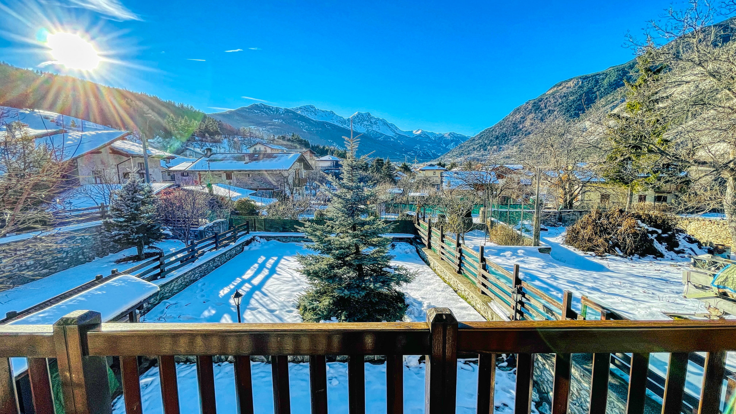 Dal soggiorno si esce su un ampio balcone con ottima esposizione e vista sulle montagne.