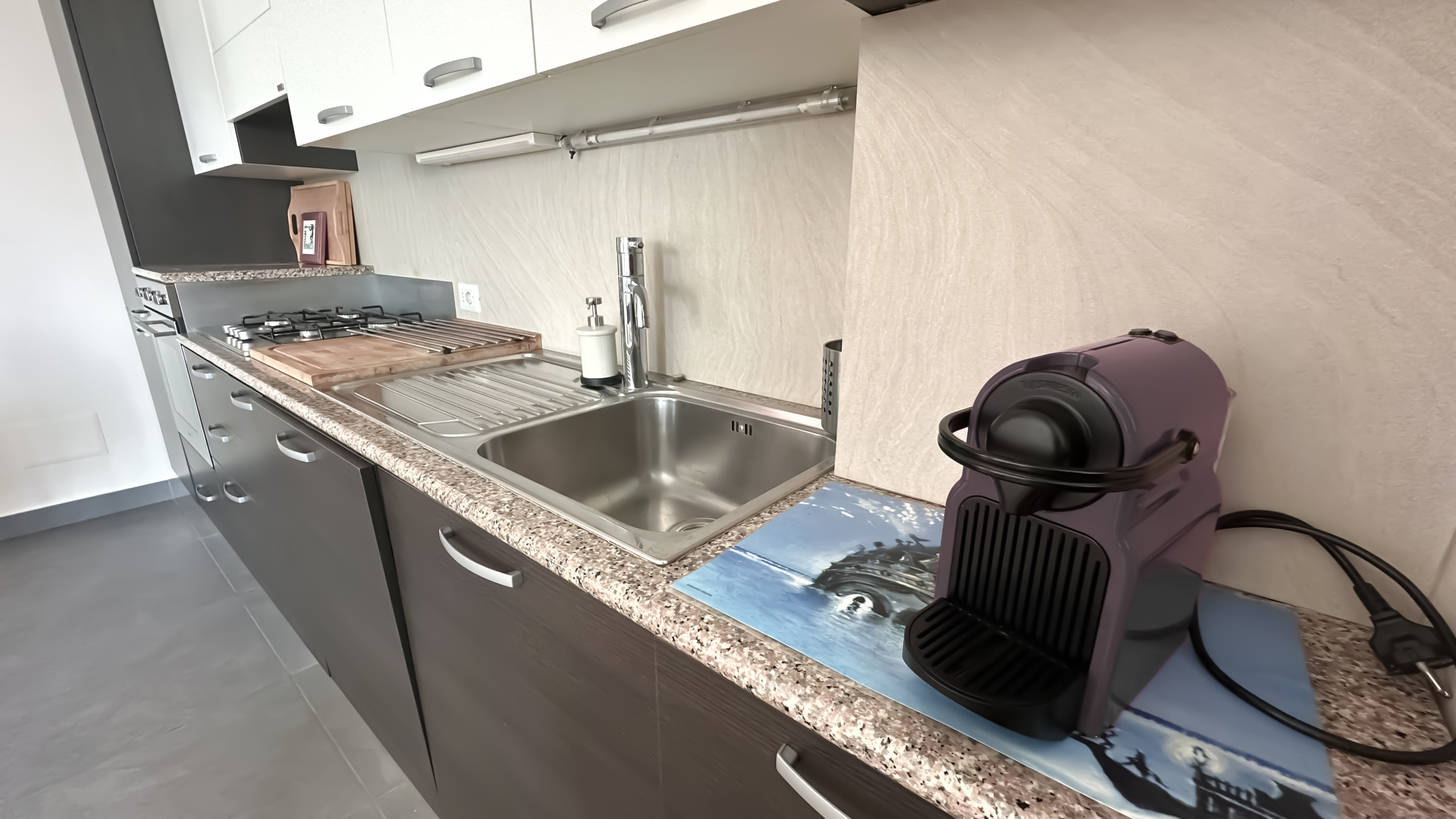 Piccolo appartamento di nuova ristrutturazione, a 150 metri dal mare con tutti i servizi necessari raggiungibili a piedi in pochi metri. Dotato di posto auto privato, terrazza, connessione internet wi-fi, e aria condizionata. Composto da soggiorno con angolo cottura dotato di divano letto doppio e camera da letto matrimoniale. Vicino alla fermata metromare che consente di raggiungere la stazione ferroviaria in pochi minuti.