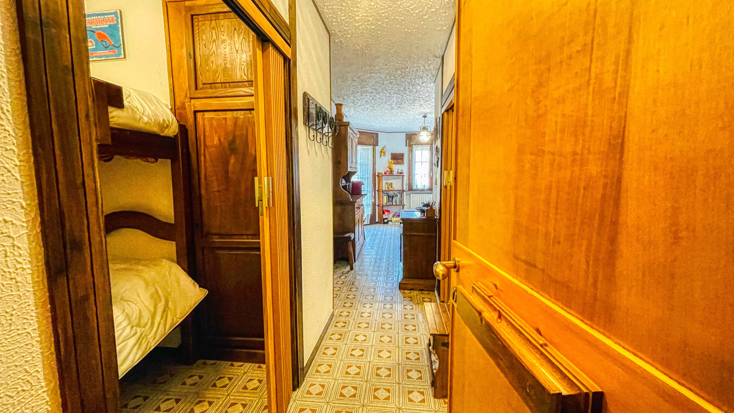 Al secondo piano senza ascensore, l'abitazione è composta dall'ingresso sul soggiorno con letto a castello e letti singoli, cucinino, e bagno.