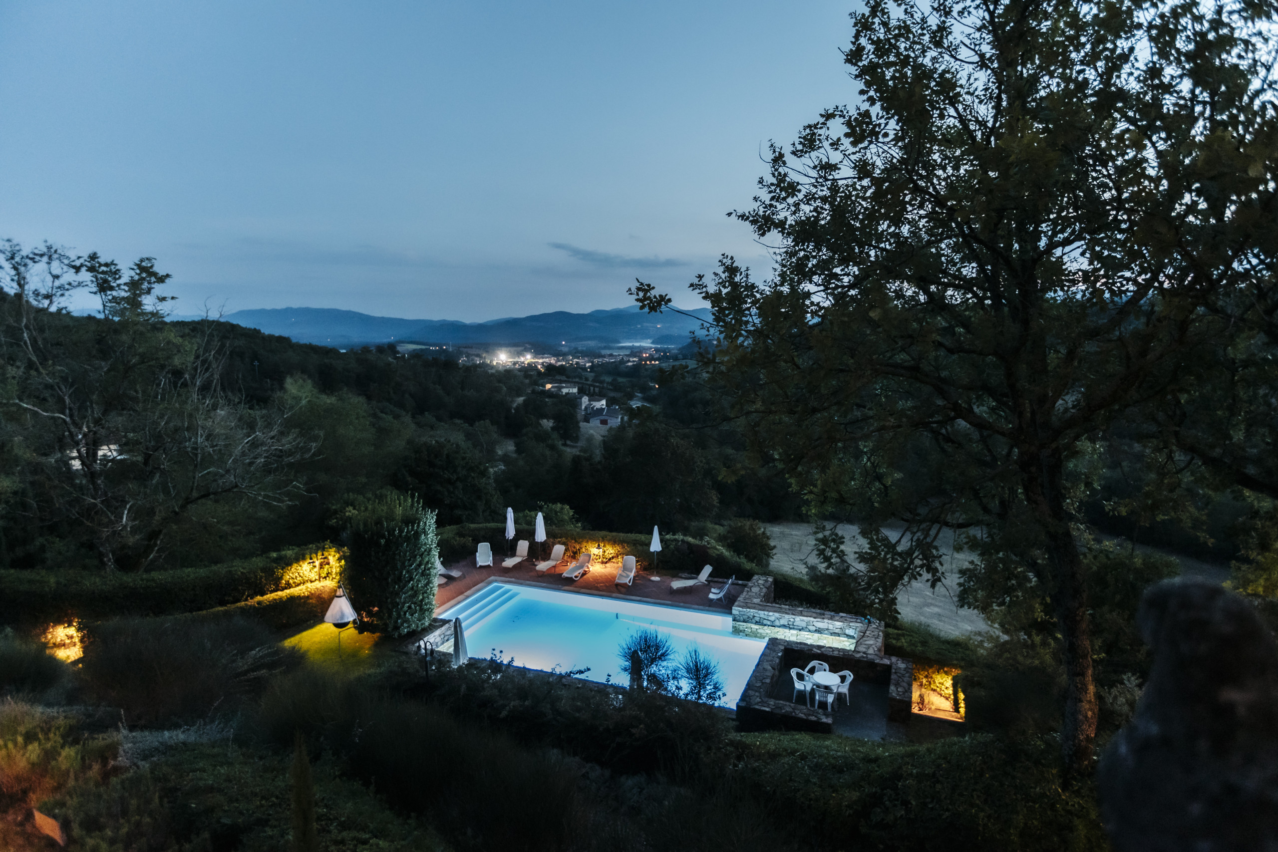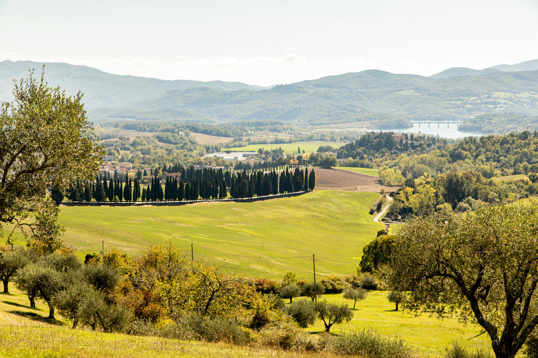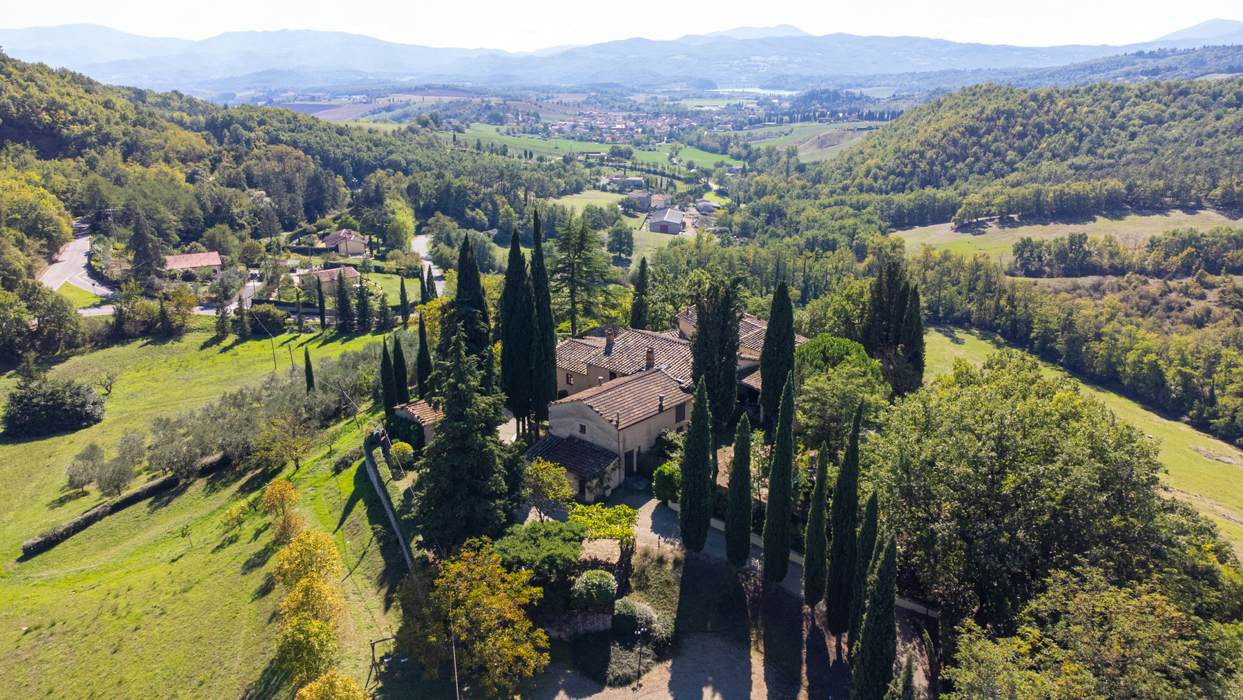 La proprietà immersa nel verde fra olivi e cipressi, è situata su un bellissimo poggio della campagna toscana del Mugello con panorami mozzafiato come il famoso viale alberato di cipressi di Galliano.