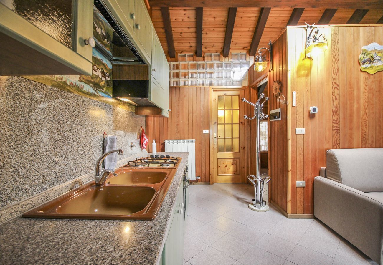 Typical mountain two-room apartment suitable for couples in the town center in Brusson with a high attic ceiling.