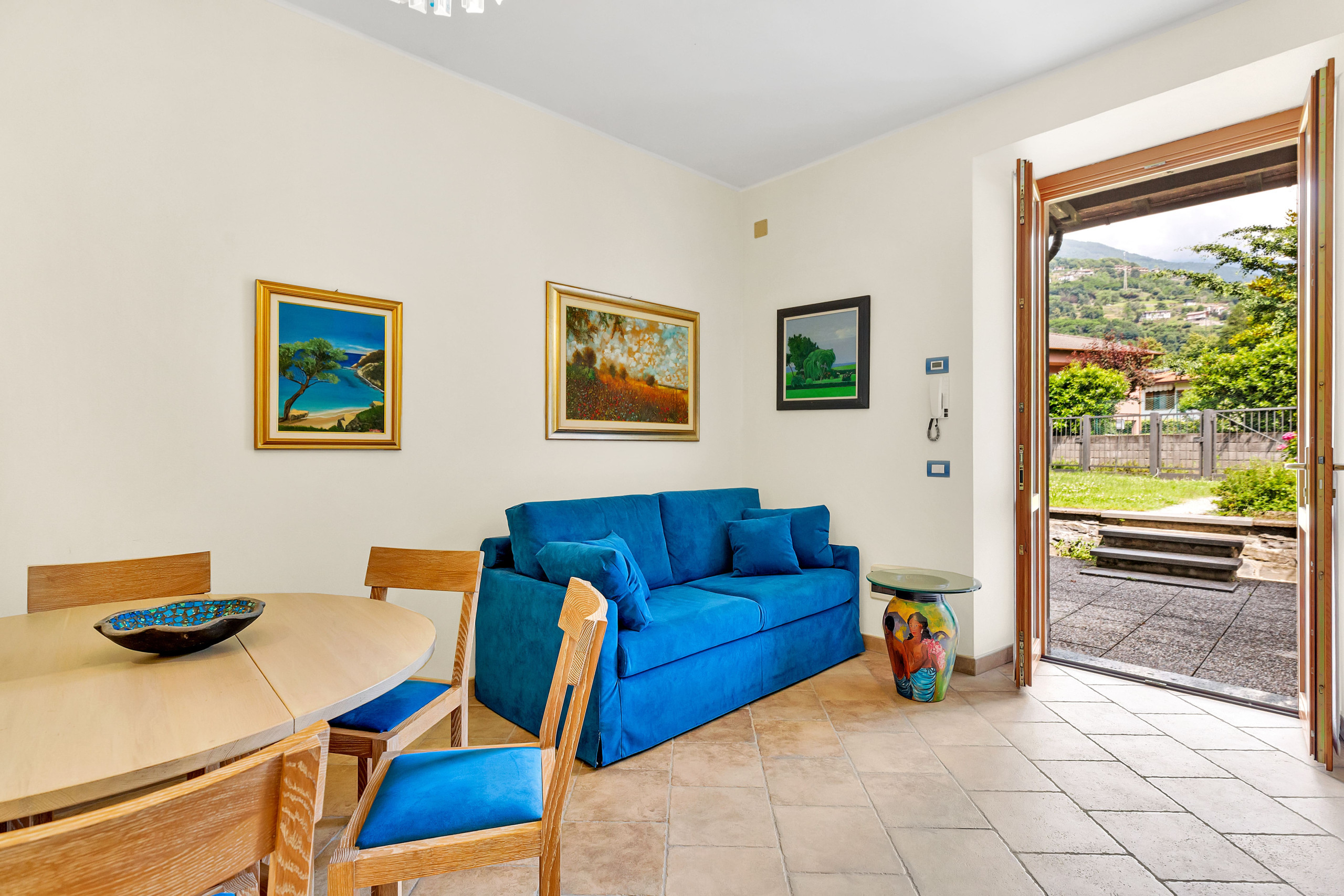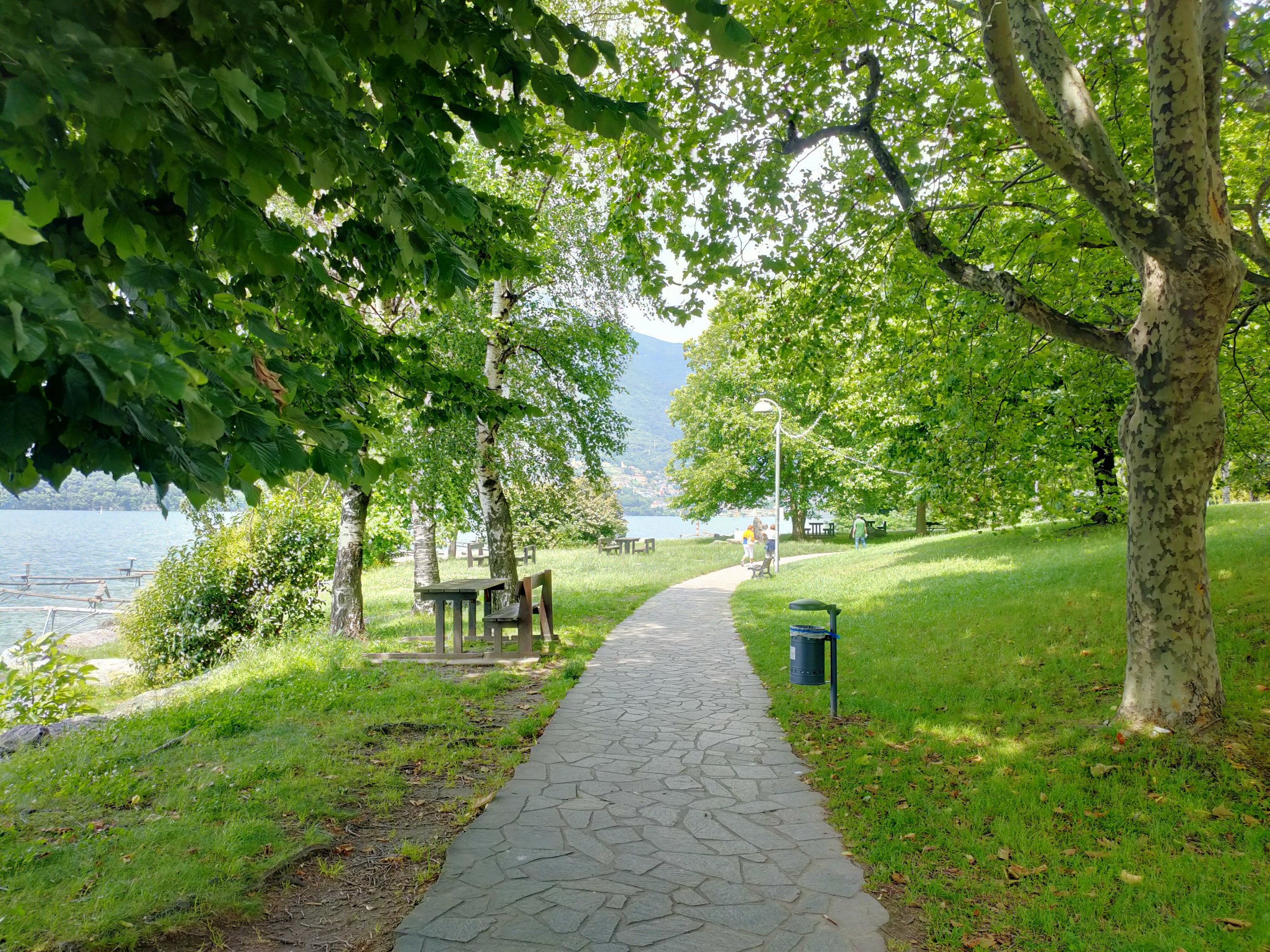 Delightful accommodation located a few metres from the lake, in a quiet and peaceful street. Two-room apartment on the ground floor with independent entrance from a private garden, equipped with a sun umbrella, table, chairs and deck chairs where you can relax.