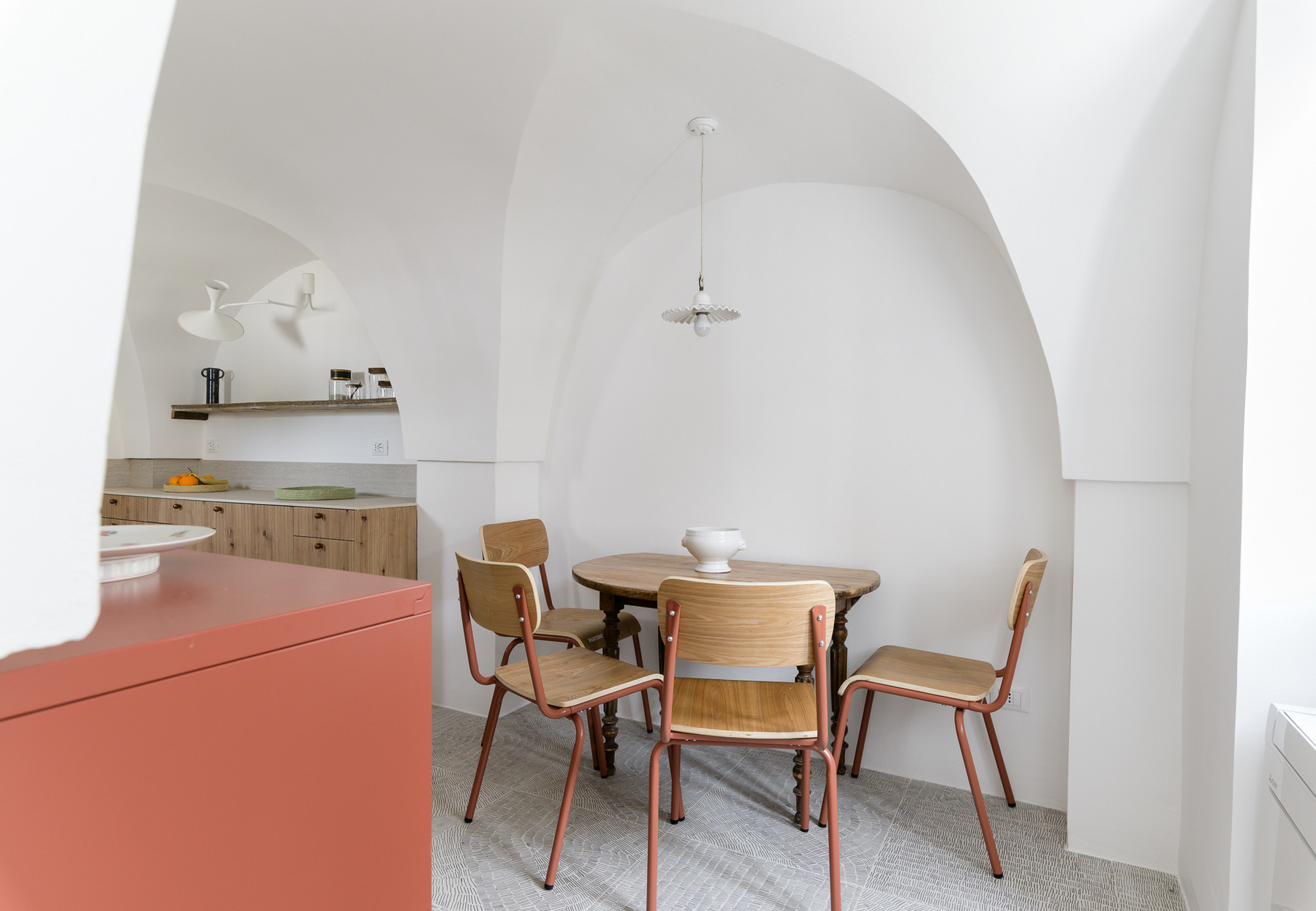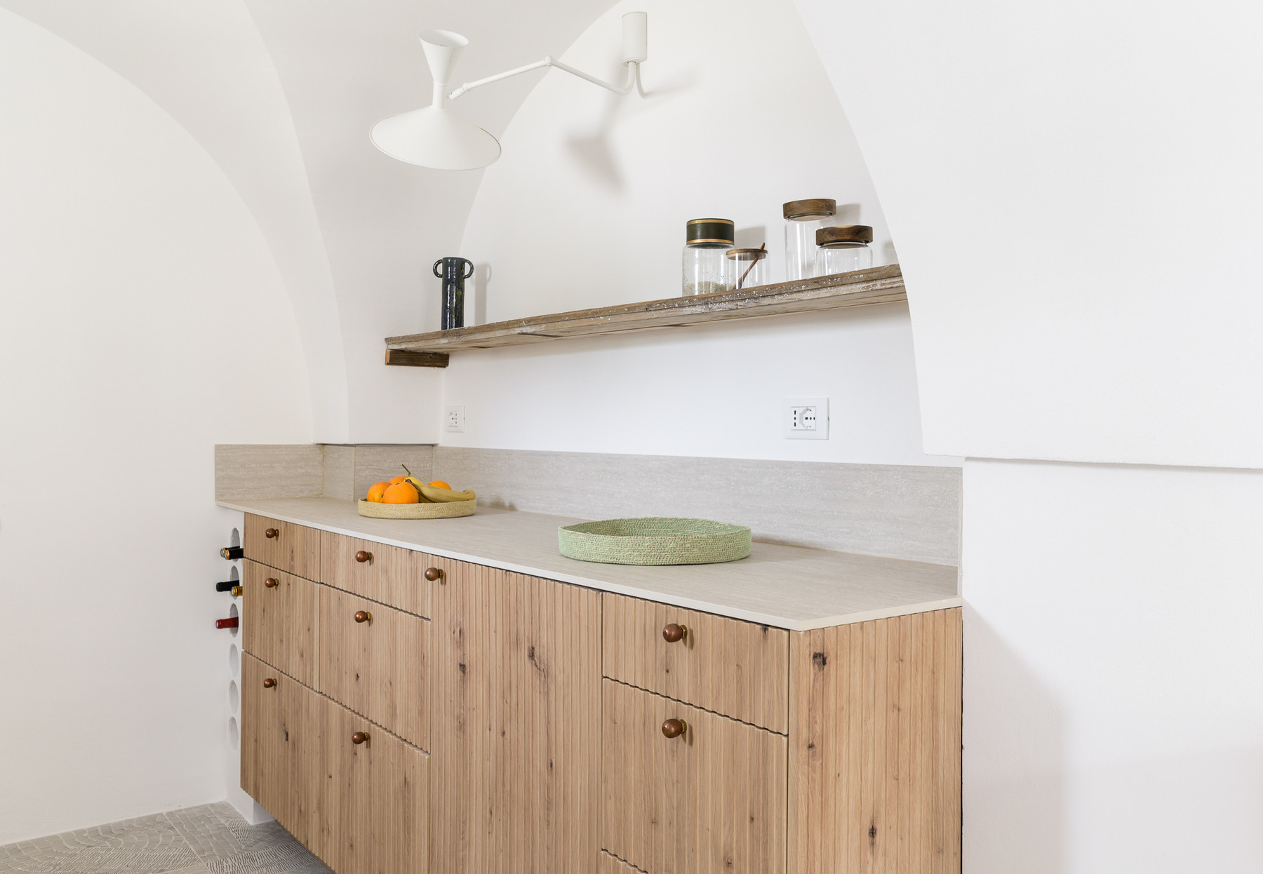 Ascending to the upper floor, a fully equipped and finely furnished kitchen opens up, perfect for enjoying local flavours in an intimate and refined atmosphere.