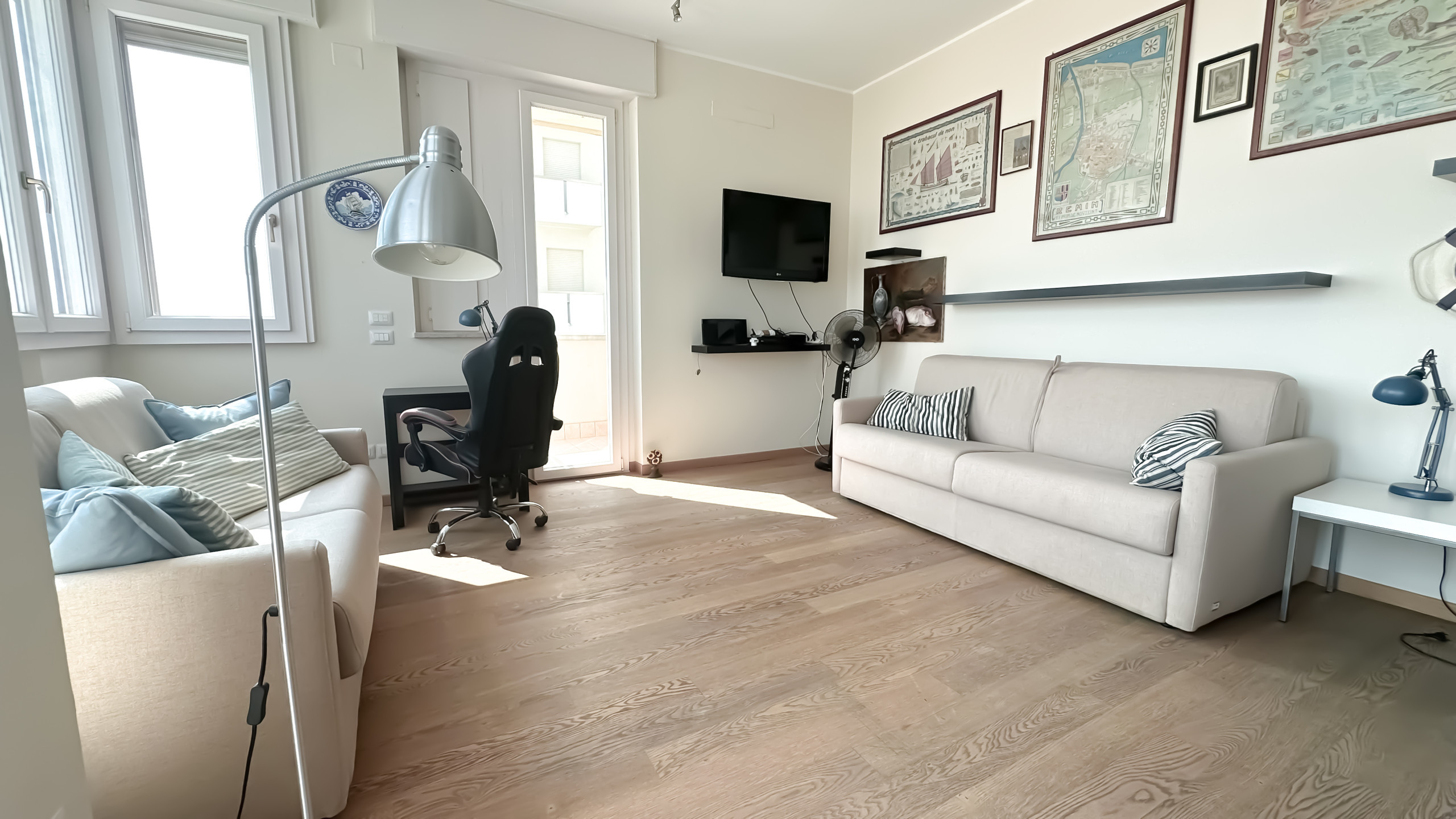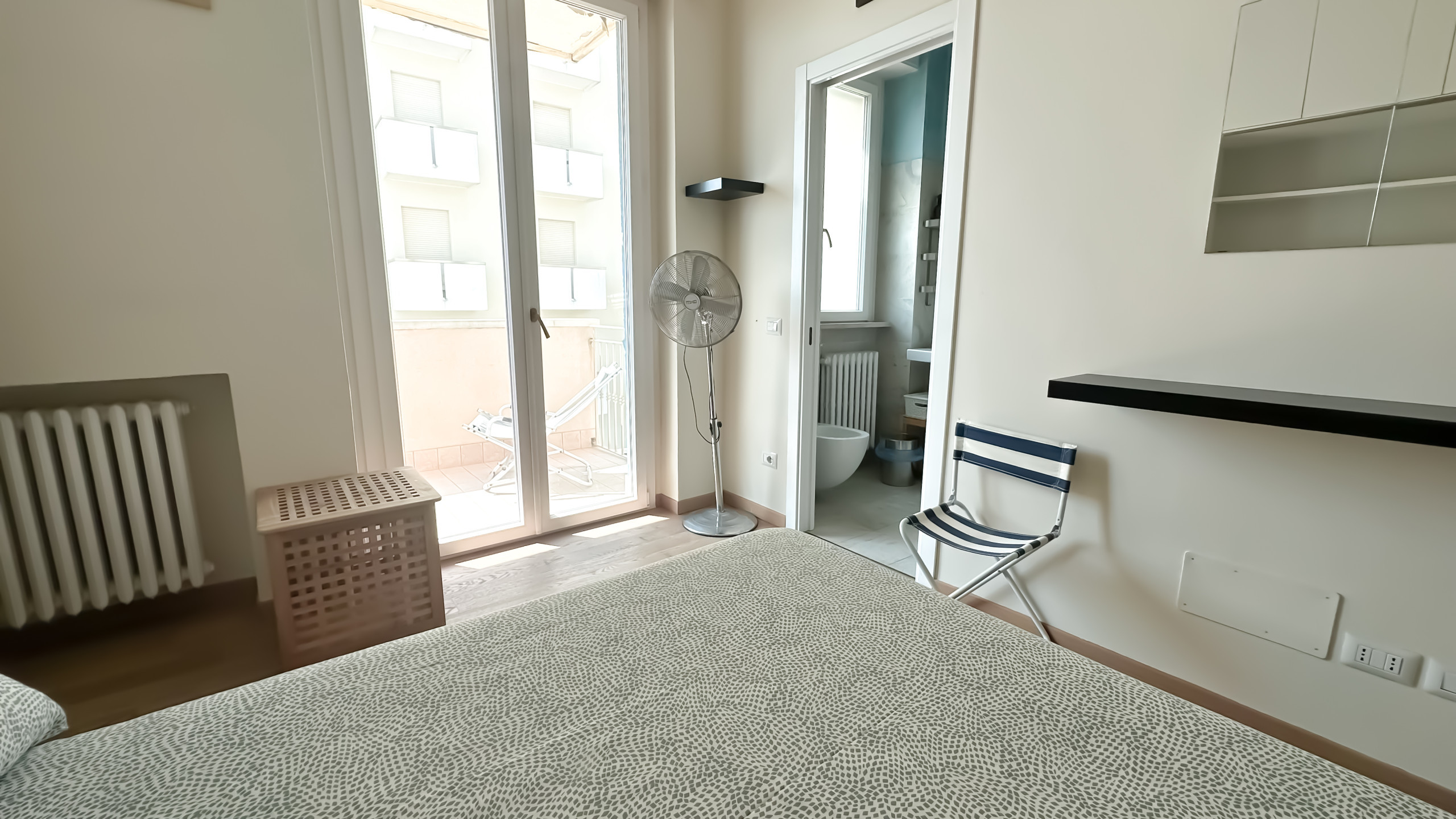 Small newly renovated apartment, 150 metres from the sea with all necessary services within walking distance. Equipped with private parking space, terrace, wi-fi internet connection, and air conditioning. Composed of a living room with kitchenette and a double sofa bed and a double bedroom. Close to the metromare stop which allows you to reach the train station in a few minutes.