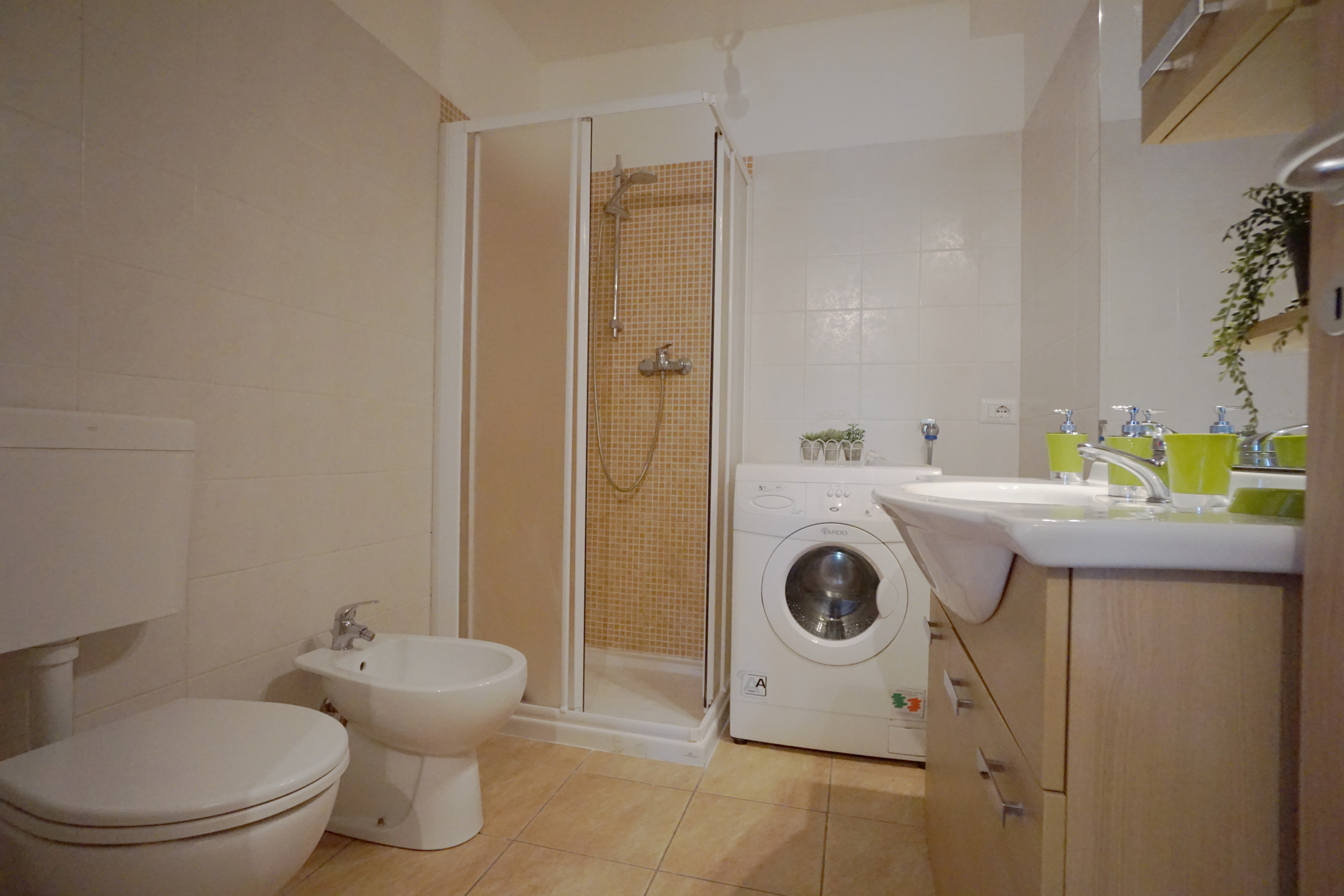Inside, the apartment features a comfortable layout with one bedroom and one bathroom with a shower. The living area includes a double bed and a double sofa bed, accommodating up to four guests. The fully equipped kitchen is perfect for preparing meals, with amenities such as a fridge, washing machine, coffee machine, oven, and kitchenware.